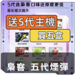 購買五盒梟客五代電子煙煙彈,即贈送梟客五代小煙主機一支。下單時請備註所需顏色,若未備註則隨機發送。
